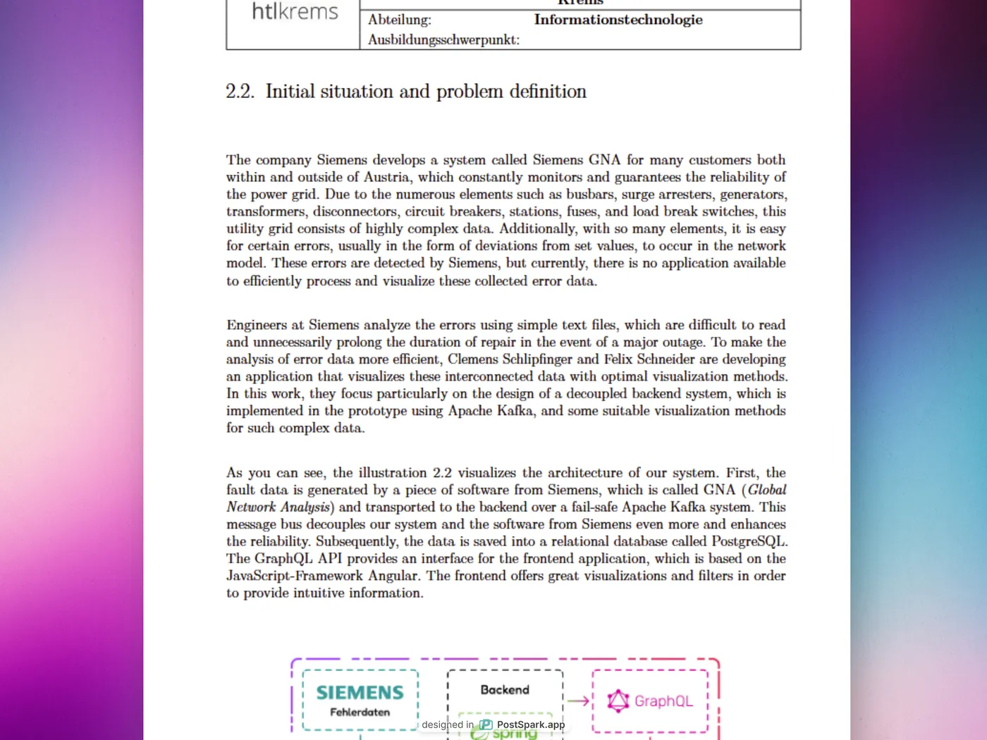 During my fifth year at HTL Krems (2023/24), every student was required to complete a diploma thesis—a substantial project split into two main parts: theoretical and practical. Working in pairs, we had to produce a theoretical paper of around 100 pages, where we introduced, analysed, and explained our chosen topic.